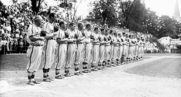 The Cleveland Indians and Cincinnati Reds squared off in the second Hall of Fame Game on June 13, 1941. The game ended early – in the sixth inning on account of rain – with the American League’s Indians defeating the National League’s Reds 2-1.