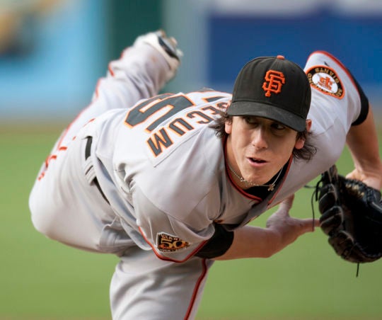 Tim Lincecum won back-to-back NL Cy Young Awards with the Giants in 2008 and 2009. (Brad Mangin/National Baseball Hall of Fame and Museum)
