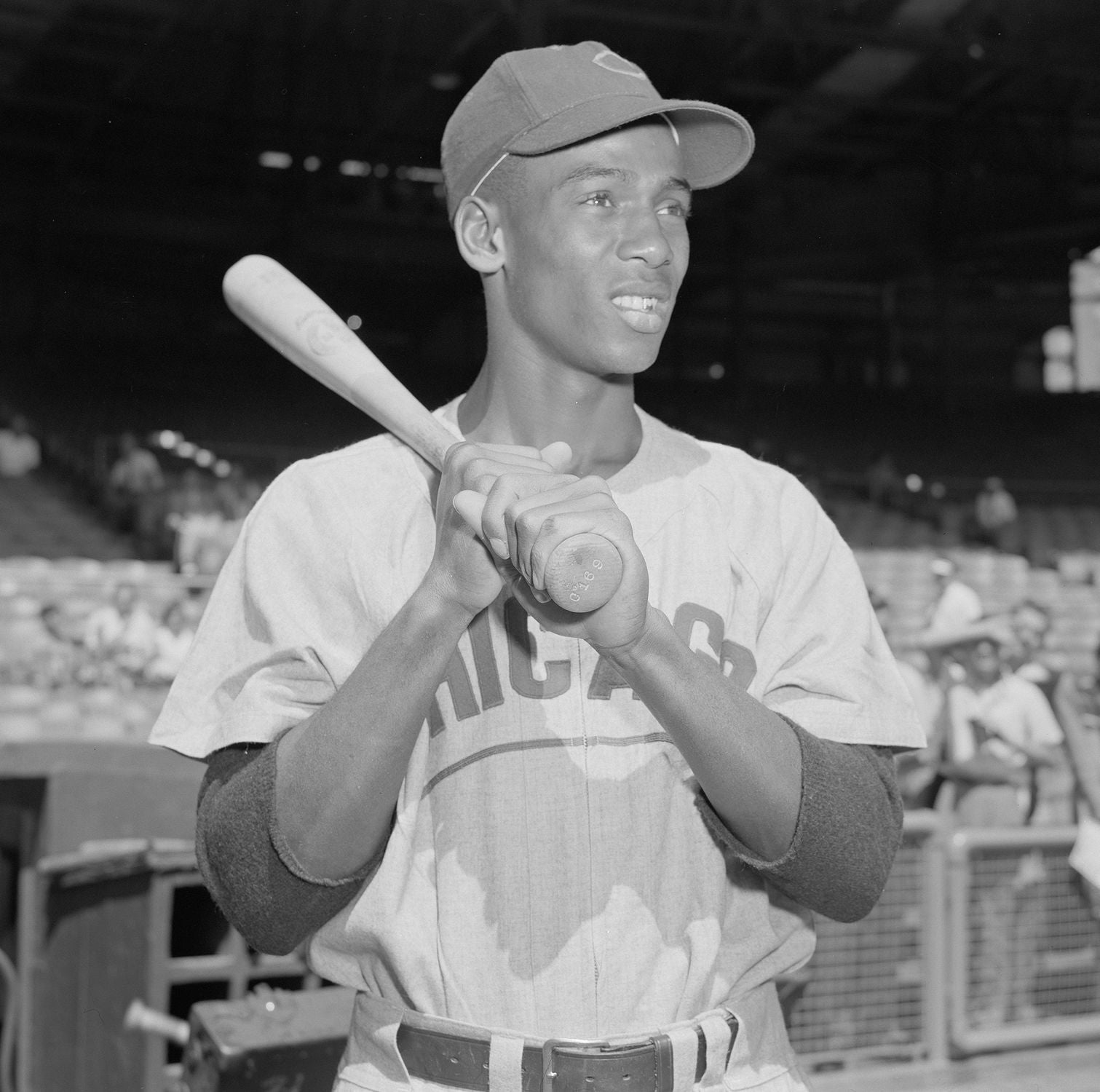 A native of Dallas, Texas, 19-year-old Ernie Banks debuted for the Kansas City Monarchs of the Negro Leagues in 1950. After two years in the Army, Banks returned to the Monarchs, who sold his contract to the Chicago Cubs in 1953. His debut on Sept. 17 marked the first appearance of an African-American player for the franchise.