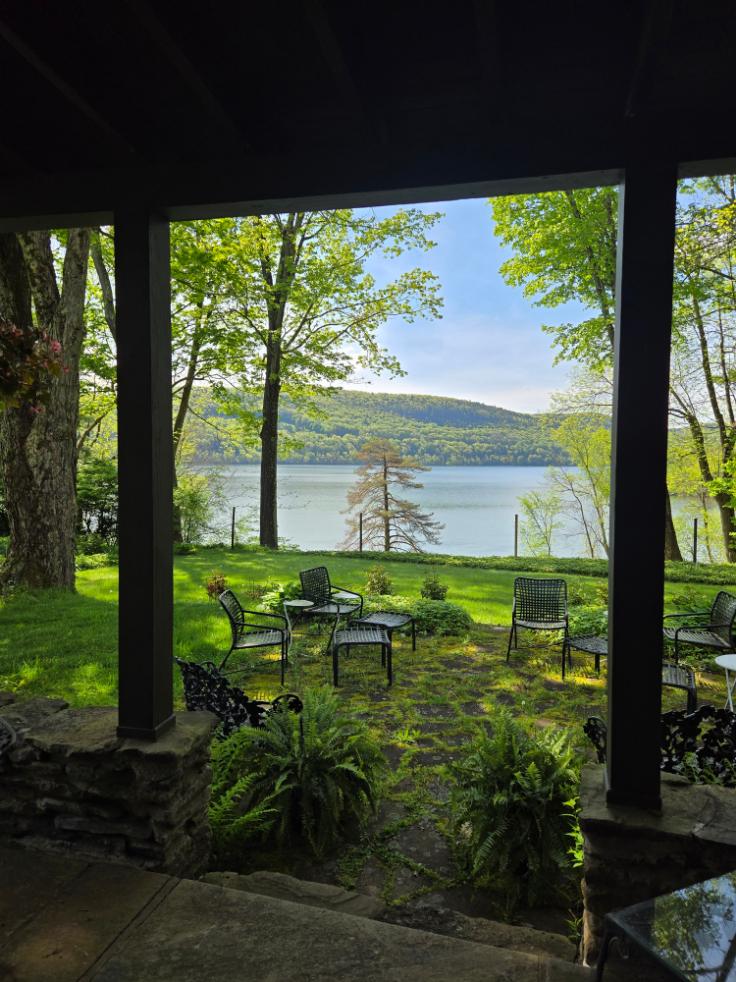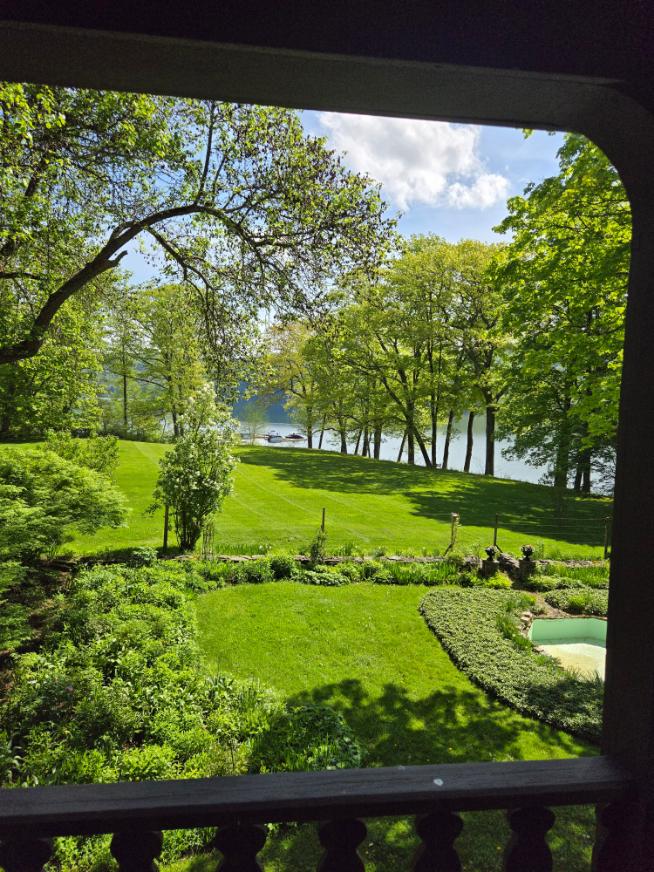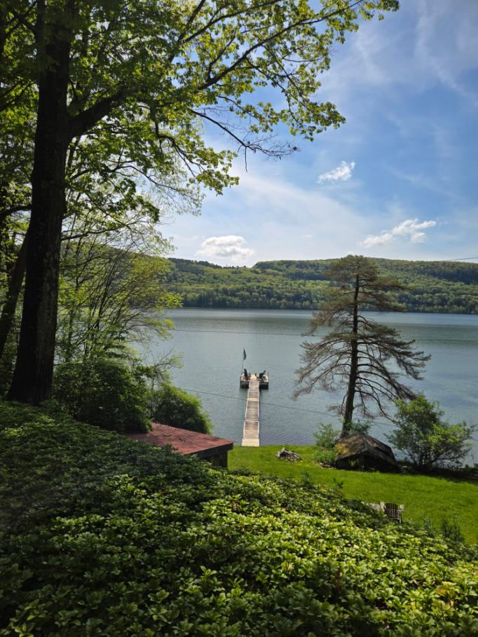 Lake front property with long swimming dock, next door to the Blue Mingo and marina.