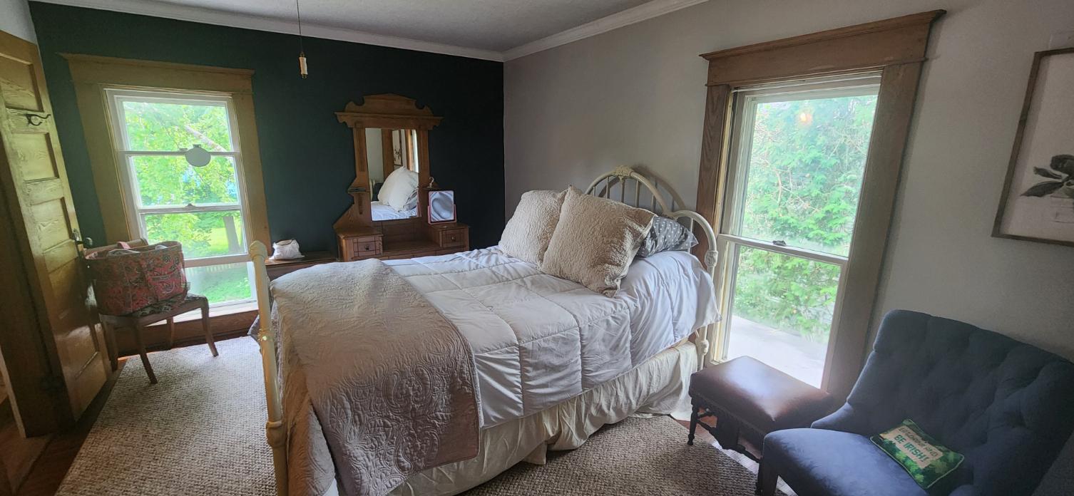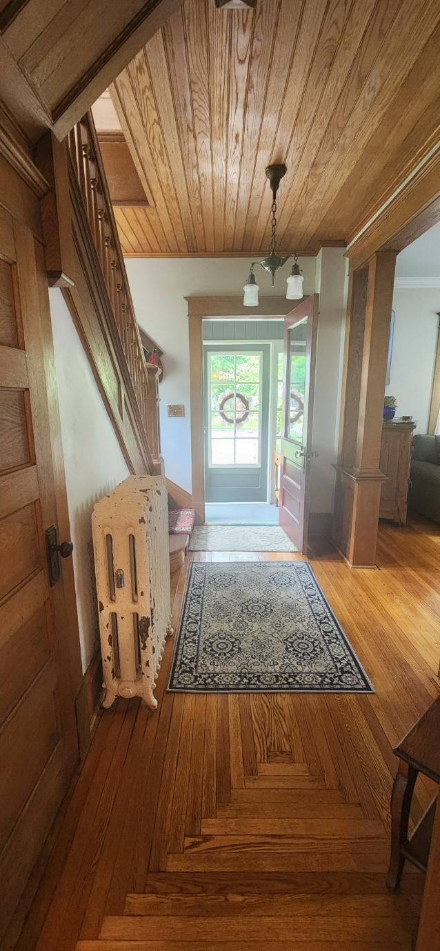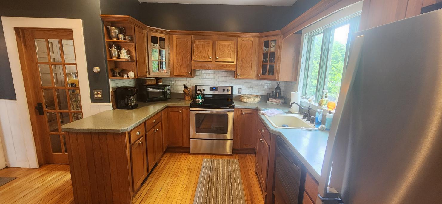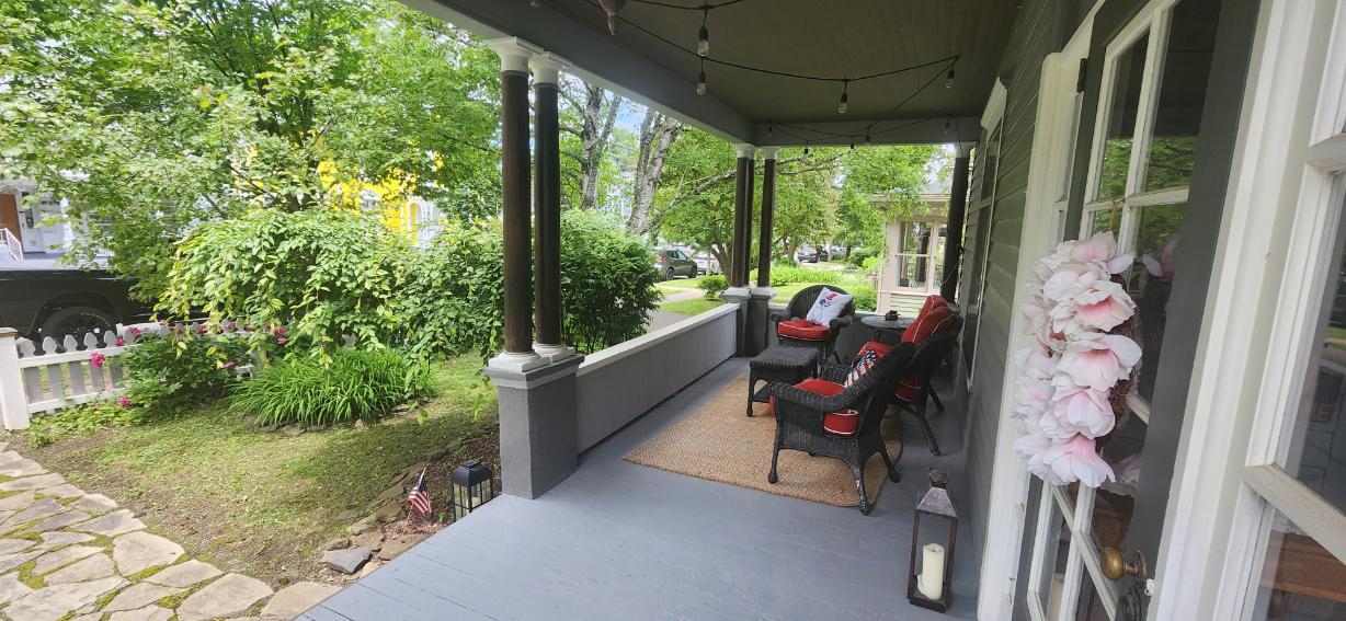 en suite, half bath on first floor. Hardwood floors throughout. Formal dining room, sitting room, and living room with large flatscreen TV. New comfortable large couches. Fully equipped, eat in kitchen. First floor laundry room. Cozy front porch for coffee and / or cocktails. Back yard patio with Weber glass grill. Off street parking in driveway. No smoking.