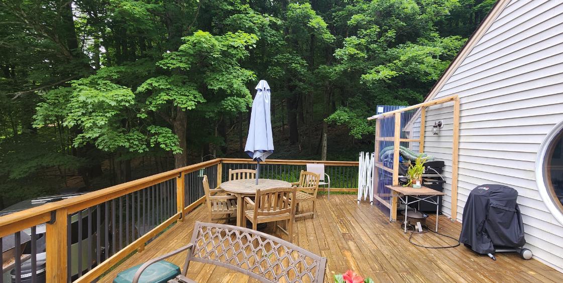 Amenities: Hair Dryer, Streaming Services, Stationary Bike, Washer / Dryer, Weights, Front deck, Upper deck, partial lake view