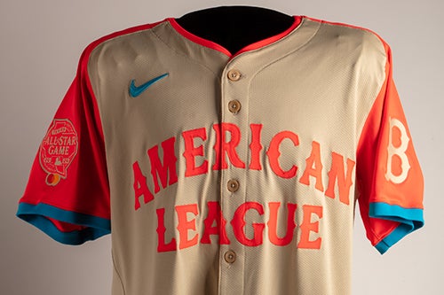 Jarren Duran wore this jersey during the 2024 All-Star Game when his fifth-inning homer gave the American League a lead they would not relinquish. The Red Sox star took home the Midsummer Classic’s MVP Award and ultimately finished the regular season with major-league-leading marks of 48 doubles and 14 triples.