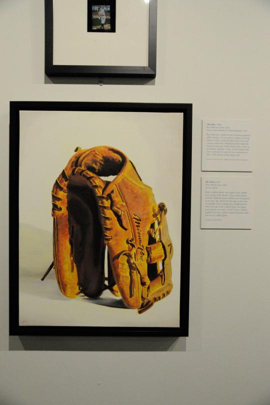 "Eli's Glove," hanging in the "Art of Baseball" exhibit. (Milo Stewart, Jr. / National Baseball Hall of Fame)
