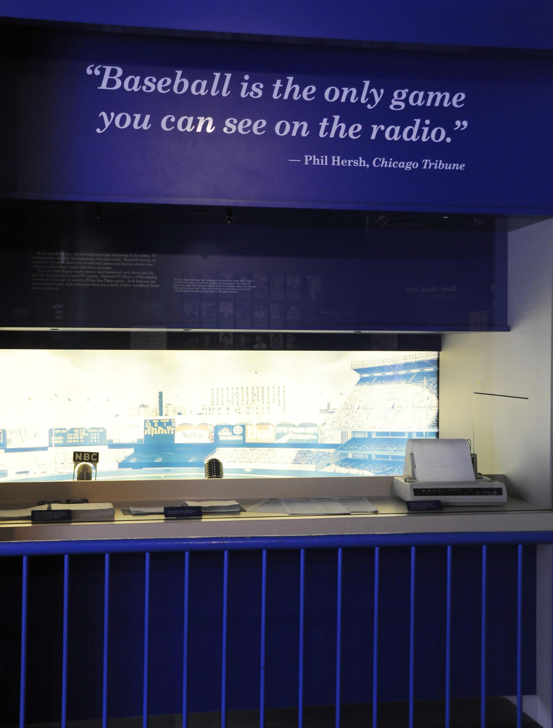 Because of this reach and influence, the Hall of Fame explores baseball broadcasters and broadcasting history in Scribes and Mikemen, an exhibit which opened in 1994. Here, artifacts and audio recordings illustrate a broad swath of broadcasting history, from the earliest pioneers to today.
