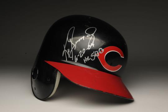 Batting helmet worn by Ken Griffey Jr. when he hit his 500th home run with a solo shot off Matt Morris of the St. Louis Cardinals on June 20, 2004. B-262-2004 (Milo Stewart Jr. / National Baseball Hall of Fame)