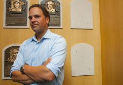 As part of his orientation, Piazza was given a tour by Erik Strohl, the Hall of Fame’s vice president of exhibitions and collections. Afterwards, the 47-year-old Piazza, looking as if he could still crouch behind the plate as well as launch an outside fastball into the right-field seats, strolled through the Plaque Gallery, dressed in jeans, a blue button-down shirt and sneakers, and was shown not only the plaques of the first five legendary Hall of Famers, but also the spot where his own bronze likeness will hang this summer.