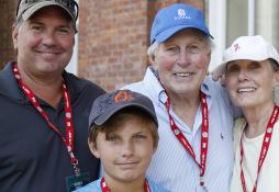 Class of 1998 inductees (from left) Lee MacPhail, Larry Doby and Don Sutton pose with youngsters who caught their ceremonial first pitches at the 1998 Hall of Fame Game. (National Baseball of Fame and Museum)