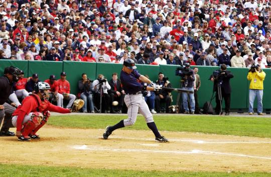 Red Sox designated hitter David Ortiz prepares to hit during the 2005 Hall of Fame Game at Doubleday Field. (Tom Ryder/National Baseball Hall of Fame and Museum) -