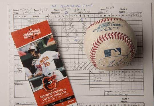 Tickets were made for the April 29 game in Baltimore, but fans couldn’t redeem them as they were prohibited from entering Camden Yards. B-75-2015. (Milo Stewart Jr./National Baseball Hall of Fame and Museum)