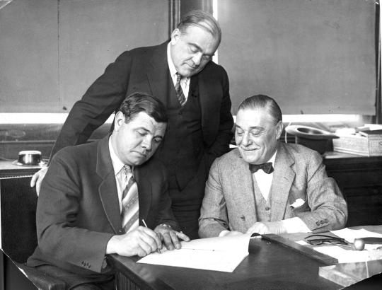 With the filming of “Babe Comes Home” complete, Ruth jumped on a train on Feb. 26 headed for New York City. Upon arriving at Grand Central Station on March 2, Ruth and Ruppert huddled the same day, and the result was a three-year deal for $70,000 a year that made home-run king the highest paid player in the game.