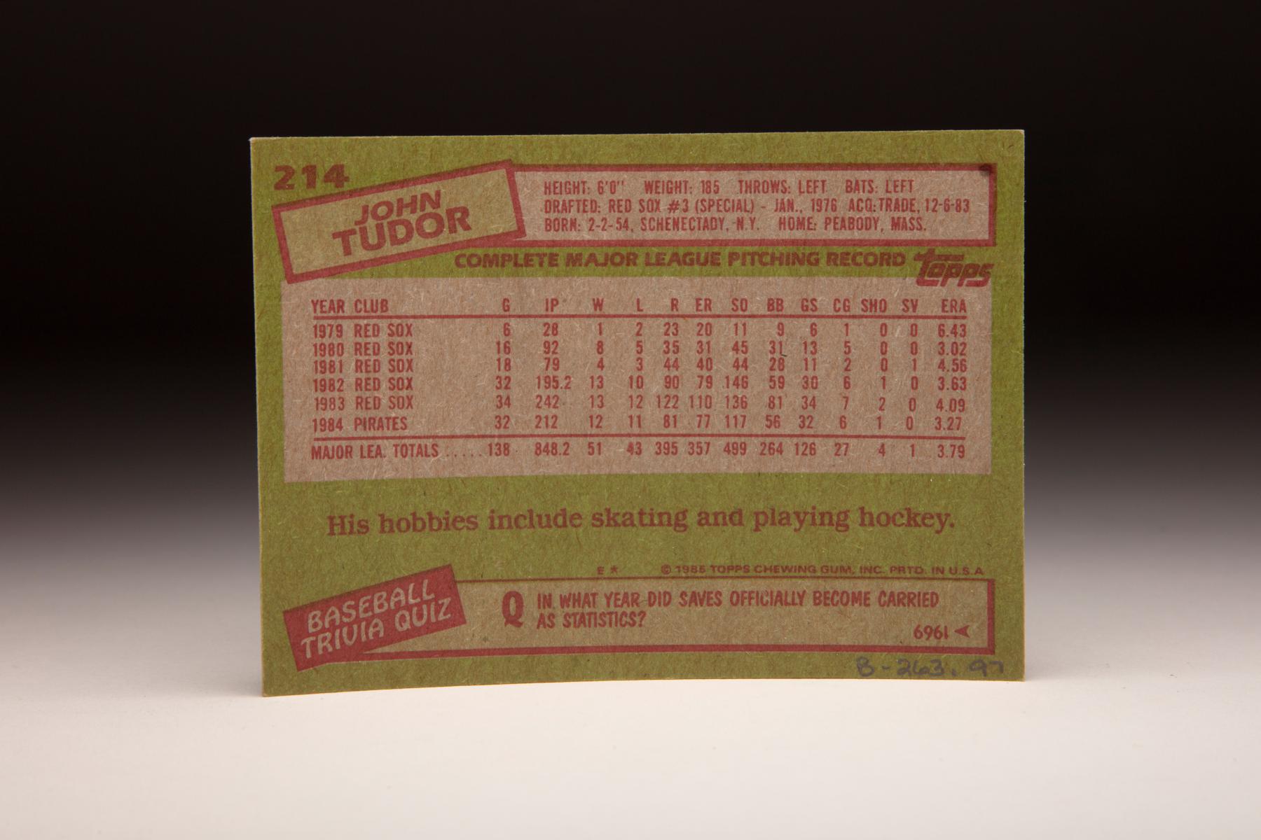 Tudor shut out the Orioles in Boston’s third game of the 1982 season and completed his first full year as a regular starter with a 13-10 record and 3.63 ERA over 195.2 innings. In 1983, Tudor led all Red Sox pitchers with 242 innings pitched while going 13-12 with a 4.09 ERA.