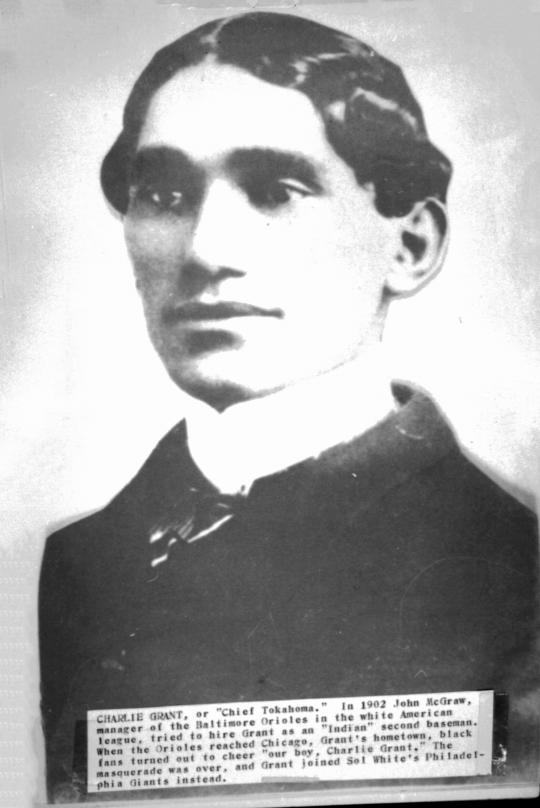 McGraw decided to play off the confusion of Charlie Grant with Frank Grant. As McGraw explained to one reporter, “He is a real Indian and not the Negro Grant as alleged.” Charlie Grant responded to the mix-up by doing an interview of his own, in which he contended that his mother was of Cherokee descent and living in Lawrence, Kan., while his father was white. McGraw continued to back up Grant’s claims, hoping that he could maintain the ruse and keep his talented second baseman on the roster for Opening Day.