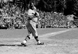 In 2006, the Museum added two more statues to the garden that serve to emphasize the depth of that cultural impact. One depicts Satchel Paige in his Kansas City Monarchs uniform, his left leg thrust skyward as he leans back to deliver a pitch. The other, “Woman At Bat,” shows a right-handed hitter from the All-American Girls Professional Baseball League following through on a swing.