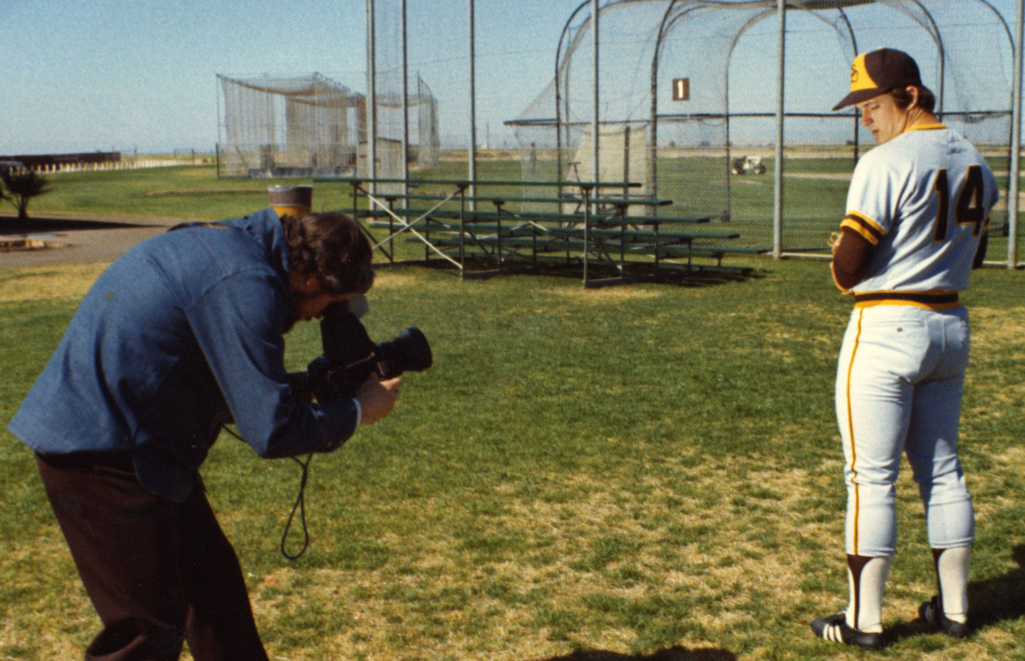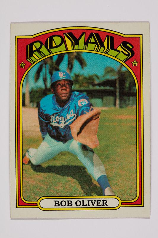 Topps Photographer Doug McWilliams would shoot players in a variety of unique positions, varying from simple kneeling to a combo of an angled back, turned head and direct gaze into the camera lens. For example, Bob Oliver's image on this 1972 Topps card. (Milo Stewart Jr./National Baseball Hall of Fame and Museum)