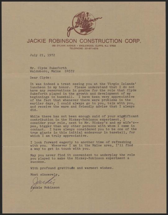 But not to Sukeforth. In this letter, penned 16 years after Robinson’s playing career ended, Robinson thanks Sukeforth for taking a chance on him, emphasizing the significant role he had in his life. What exactly did Sukeforth do to be called a “true giant” in Robinson’s trajectory?