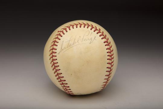 Paige was inducted into the National Baseball Hall of Fame in 1971, which made him the first player to be elected by the Committee on Negro Baseball Leagues. His autographed baseball from his induction year is preserved in the Museum’s collection.