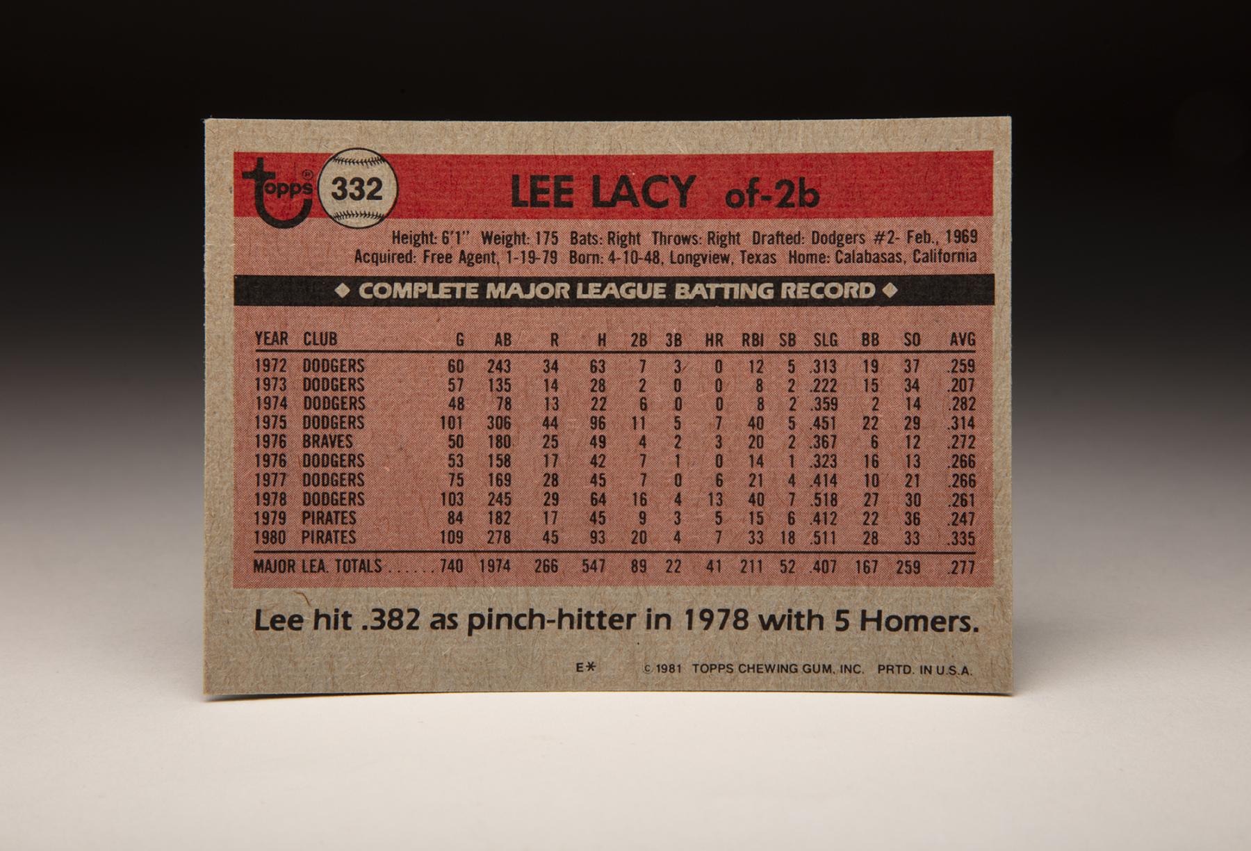 And just like with the internet today, your baseball cards were never wrong. So it was like discovering buried treasure when you stumbled upon a unique card, like the 1981 Topps issue for Lee Lacy.