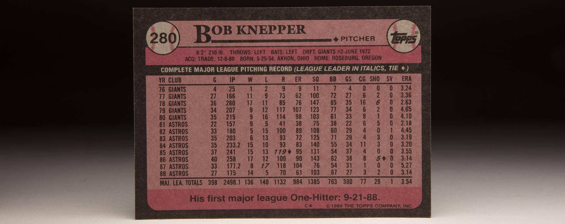 Knepper managed to ignore the resulting criticism and posted a 14-5 record and 3.14 ERA in 1988, earning his second All-Star Game selection. But in 1989, Knepper was 4-10 with a 5.89 ERA when the Astros released him on July 28. He signed with the Giants a week later and worked effectively as a swingman down the stretch, helping San Francisco win the NL West while going 3-2 with a 3.46 ERA over 52 innings, spinning a shutout against the Mets on Aug. 22. It would be the 30th-and-final shutout of Knepper’s career.