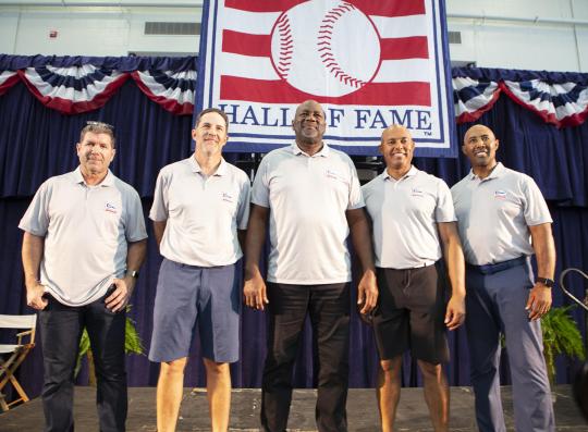 During a Saturday press availability on the gym floor of the Clark Sports Center, the five living members of the Hall of Fame Class of 2019 shared their thoughts on the day the National Pastime’s greats are honored.