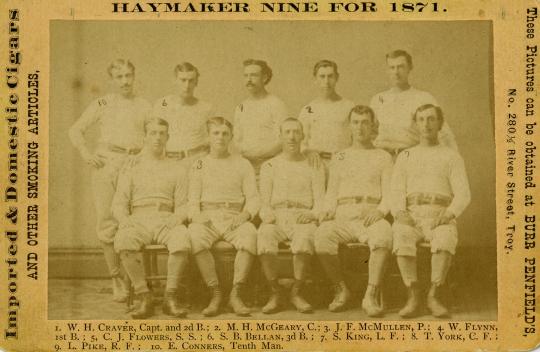 This occurred at the time when the NABBP was debating the establishment of professionalism in the game, with Lansingburgh making the decision to join this new category. They would appear as the Troy Haymakers, a charter member of the National Association, the first openly professional major league in 1871.