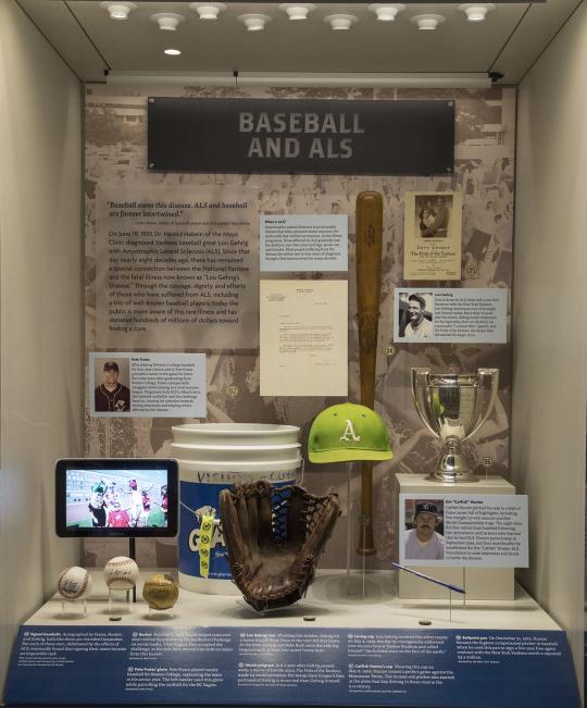 “Our ‘Whole New Ballgame’ exhibit explores baseball stories that are relevant today by giving them historical context,” said Hall of Fame Senior Curator Tom Shieber. “The success of the Ice Bucket Challenge in raising over $250 million for ALS research while simultaneously raising public awareness of Lou Gehrig’s Disease provided us with an excellent opportunity to create a small but engaging exhibit about the special connection that our National Pastime has long had with the terrible illness.”