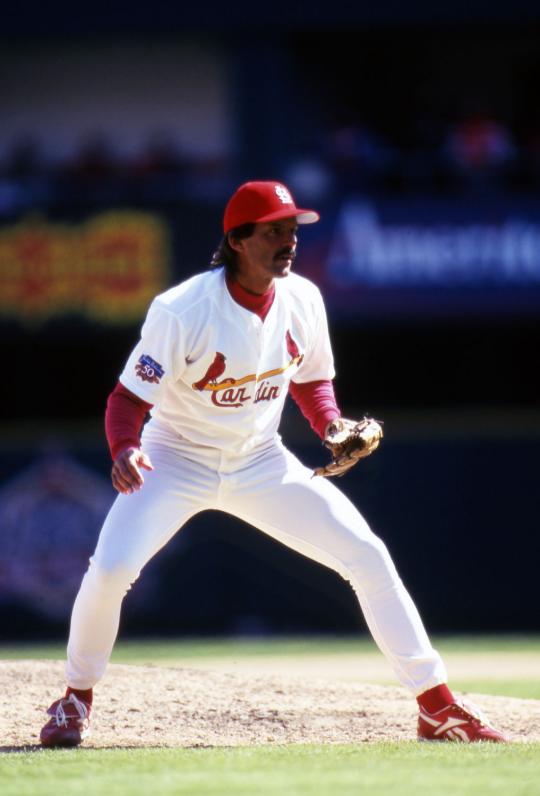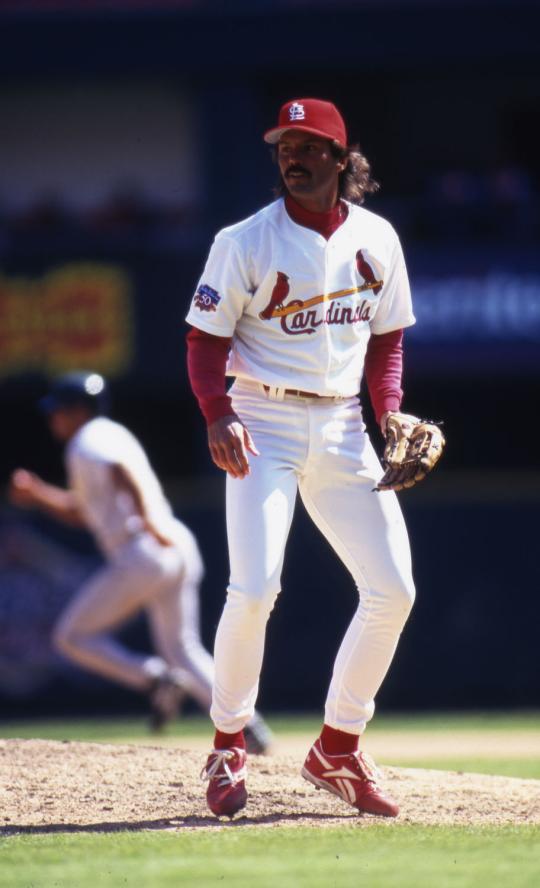 Following an incredible nine-year stretch in Oakland that saw him save 320 games and win the 1992 American League Cy Young and MVP awards, Eckersley headed to the National League and a Cardinals team that had recently hired former A’s manager Tony La Russa. The Cardinals sent pitcher Steve Montgomery to Oakland in exchange for Eckersley, and the side-arming right-hander stepped right into the closer’s role in St. Louis – saving 30 games and helping the Cards win the NL Central.