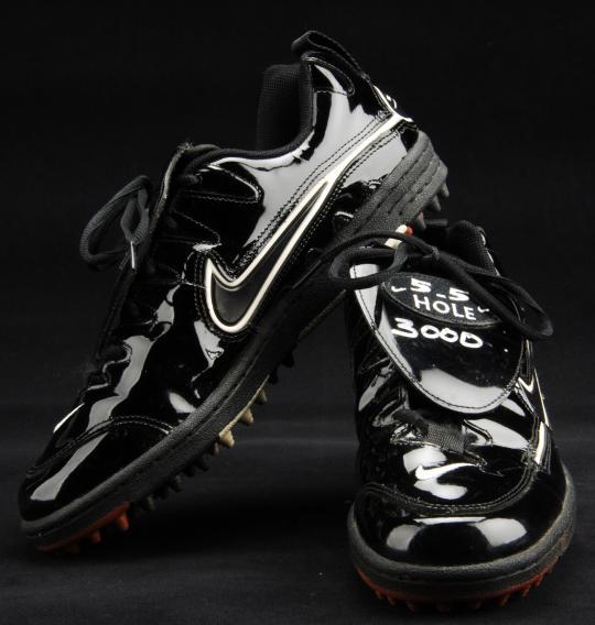Gwynn favored the opposite field gap so much that he had “5.5 HOLE” stitched into the tongue of his cleats. And while his 3,000th hit did not fall between third and short, Gwynn wore this pair of black patent leather Nike cleats on Aug. 6, 1999, as he reached the milestone on a line drive over second base.