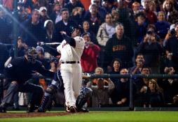 “Mr. Padre” picked up the significant single in the first inning off Montreal Expos pitcher Dan Smith and was quickly surrounded by teammates and family offering congratulations at first base.