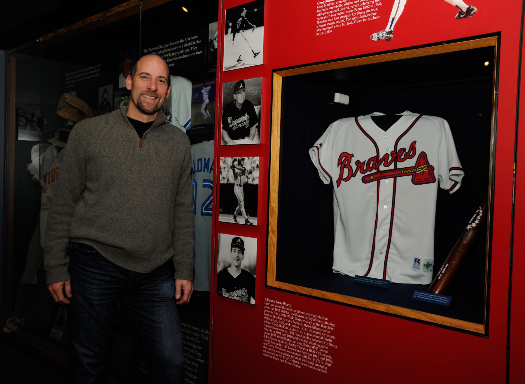 When the tour headed to the Museum’s basement for the collection’s storage area, Smoltz was able to see a pair of cleats he had donated from his 200th career win, as well as the bat Braves teammate David Justice used to homer in 1995’s deciding World Series Game 6, and a cap from Braves teammate Rafael Furcal’s 2003 unassisted triple play.